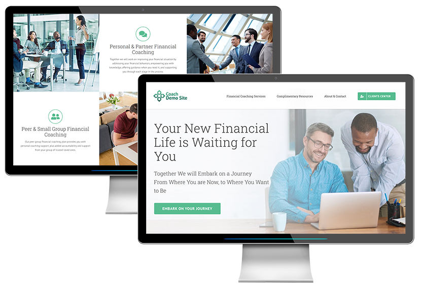 Select the full financial coaching program (Certification, Coaching Resources, Client Communications & Business Resource Package) to receive a custom website when you graduate– complimentary. This is more than just a website – it gathers leads and can help manage clients and process payments by embedding your e-commerce and calendar systems. Details: