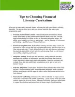 Financial Literacy Curriculum Best Practice Checklist