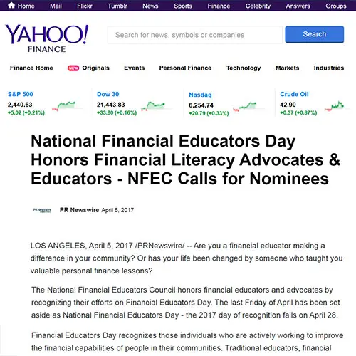 The National Financial Educators Council is dedicated to creating a world where people are informed to make qualified financial decisions that improve their lives, the lives of their loved ones, and the lives of people they impact around the globe.