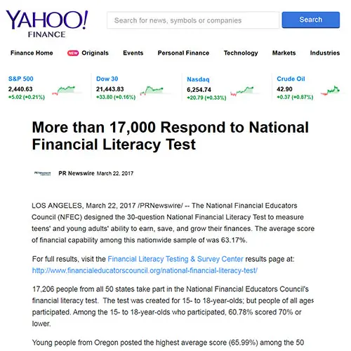 To date this initiative has included more than 100 live instructional events for students, parents, faculty and staff. In addition to live instruction, promotional events and contests encourage active participation while raising awareness about the program. Online and mobile learning also contribute to the educational mix. The NFEC’s proprietary eLearning platform forms the backbone of the Center’s online personal finance initiative.