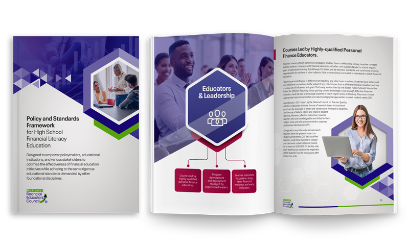 The NFEC’s Financial Literacy Standards for learners and educators were developed to improve the quality and enhance the impact of financial literacy instruction. These standards define what a person should know about personal finance across the core areas of this subject matter and the best practices for teaching personal finance.